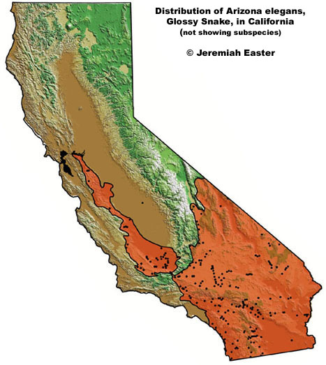 http://www.californiaherps.com/snakes/maps/aelegansmapjeaster.jpgThis is a representation of a Dot Distribution Map, this is a map of California and the dots are a representation of the Arizona elegans which a Glossy snake that lives in California. As you can see on the map the number of dots represents the quantity of these snakes in the region.